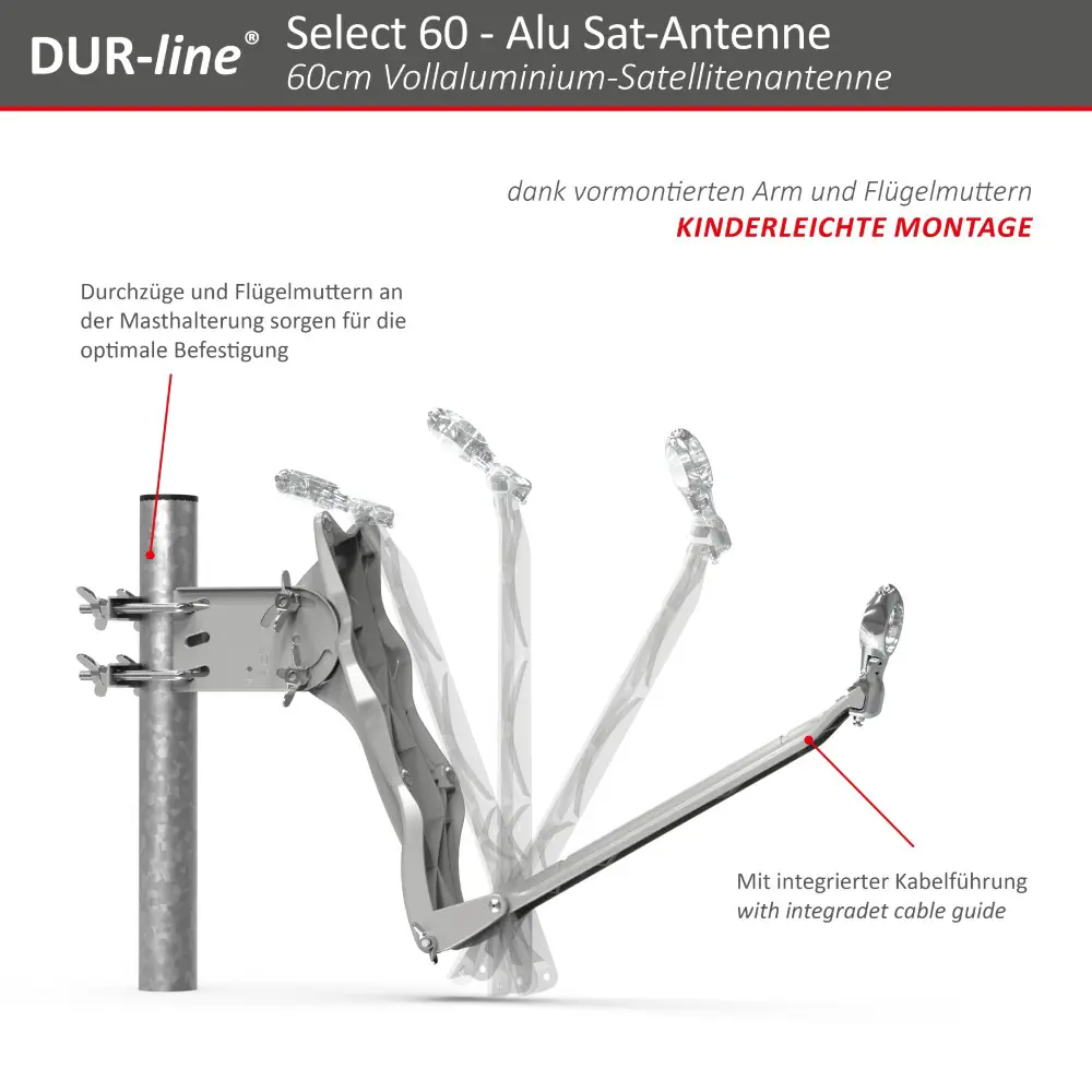 1x DUR-line® Select 60/65 Hellgrau – Satellitenantenne
