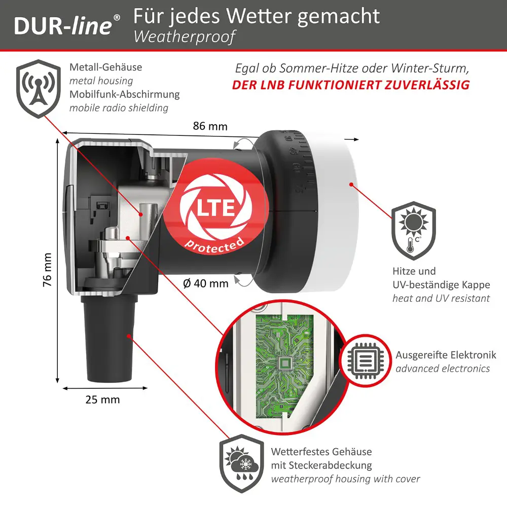 - LNB MIT NEUESTER TECHNIK > Unterstützt DVB-S/S2, Full HD, 4K/UHD, 3D - LNB mit Störfilter und ausziehbarem Wetterschutz