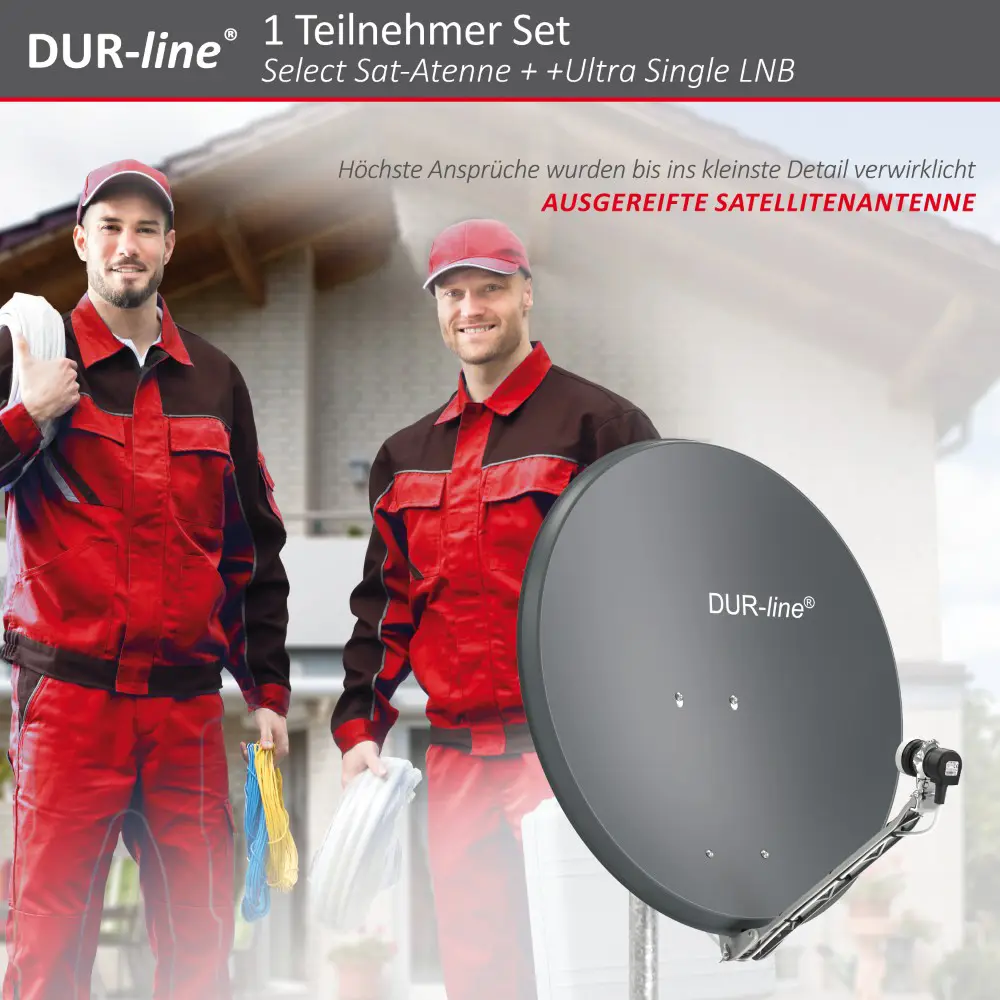- LIEFERUMFANG > DUR-line Select 75/80 Anthrazit - Satellitenantenne [ 3x Test: SEHR GUT* ] + DUR-line +Ultra Single LNB [ Test: SEHR GUT* ]