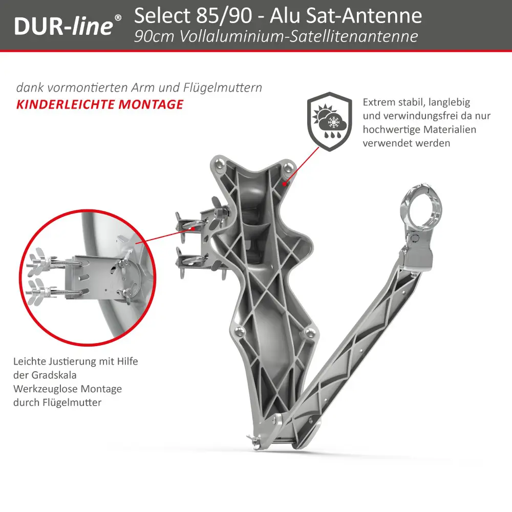 - Bestehend aus: DUR-line Select 85/90 Hellgrau - Satellitenantenne [ 3x bestens ausgezeichnet* ] + DUR-line +Ultra Twin LNB [ Test: SEHR GUT* ]