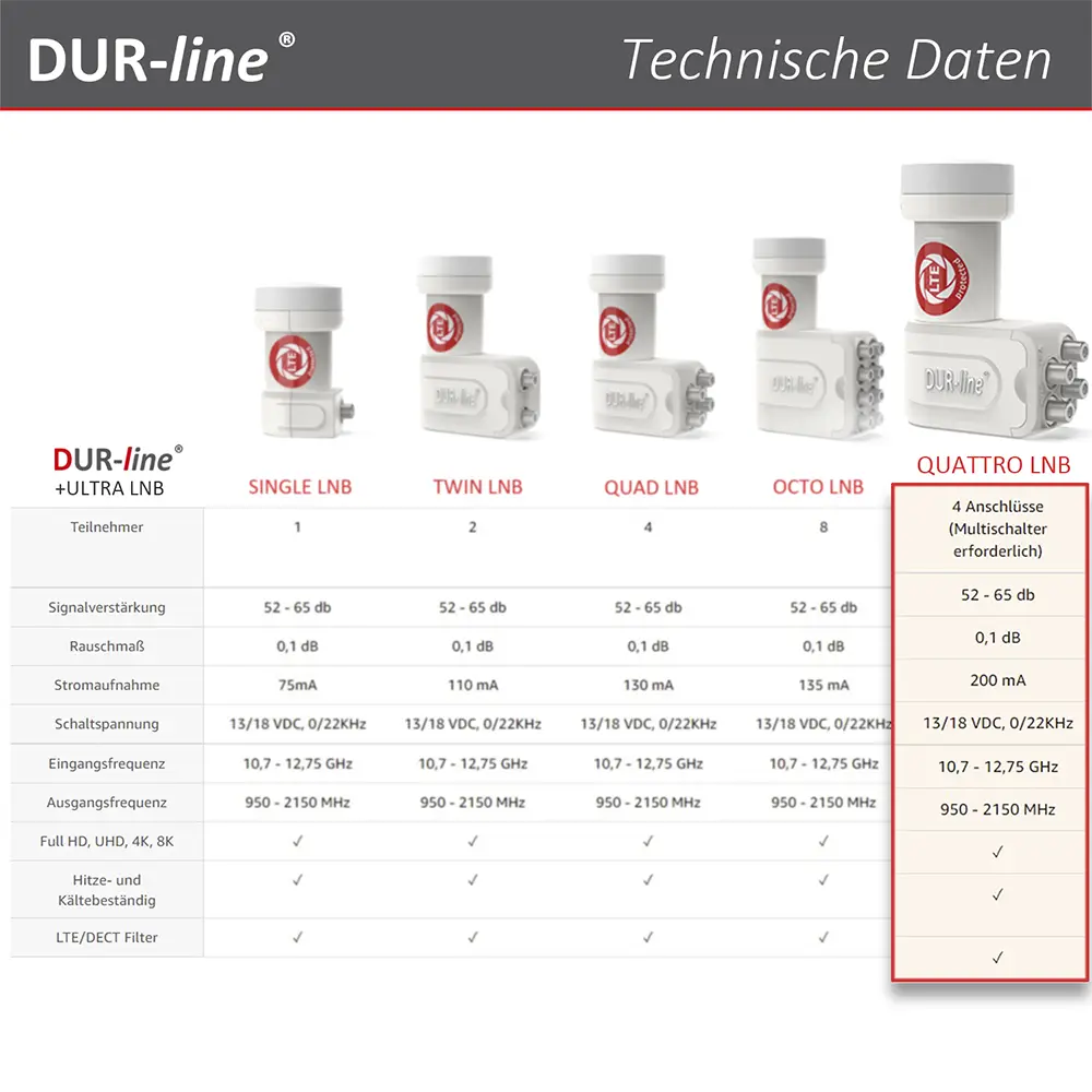 Mit den „+ Ultra" LNBs von DUR-line erwerben Sie erstklassige Qualität und aller neueste Technologie.
