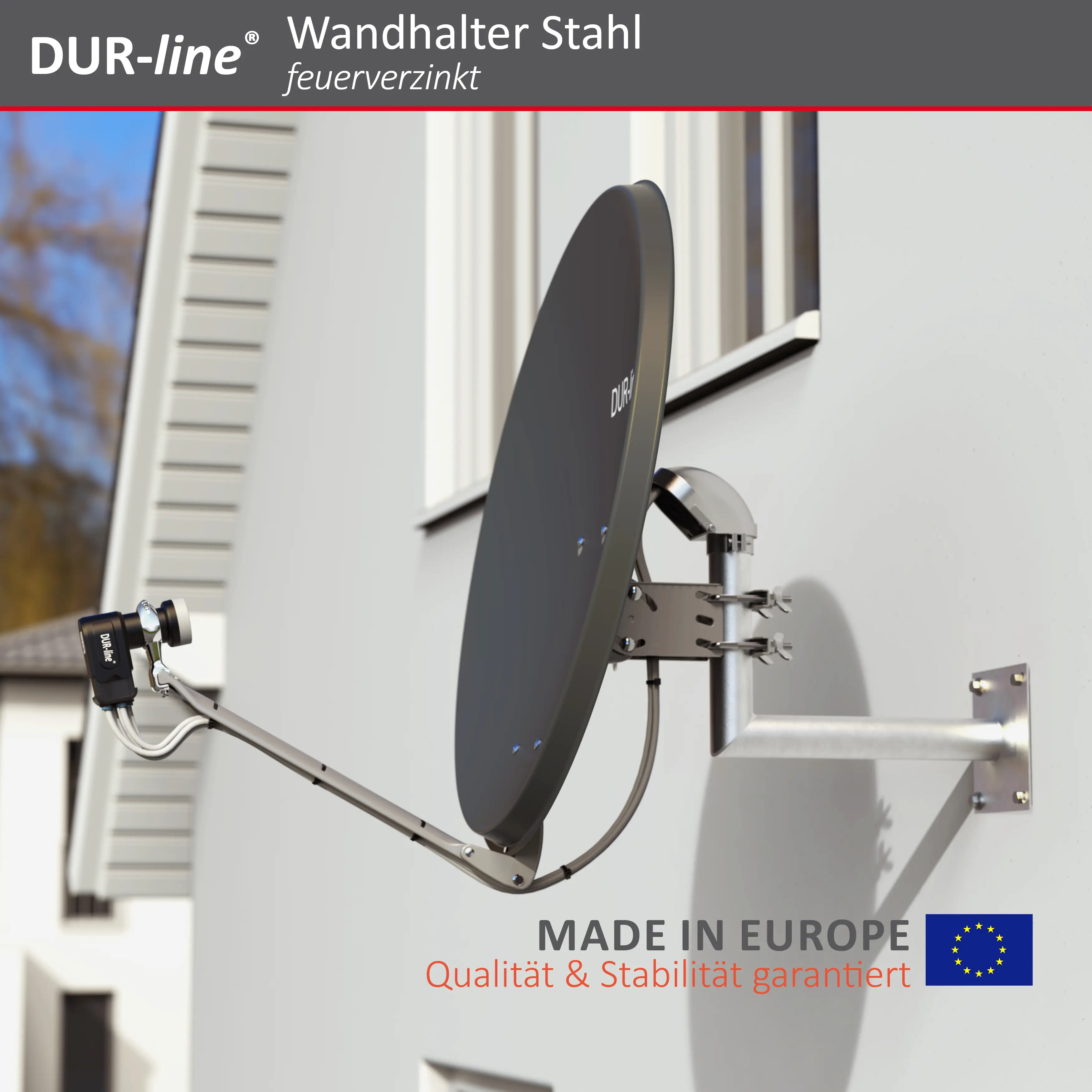 Stabiler Stahl-Wandhalter in hochwertiger Optik, präzise geschweißt, zur permanenten Befestigung von Satelliten-Antennen und vielem mehr.