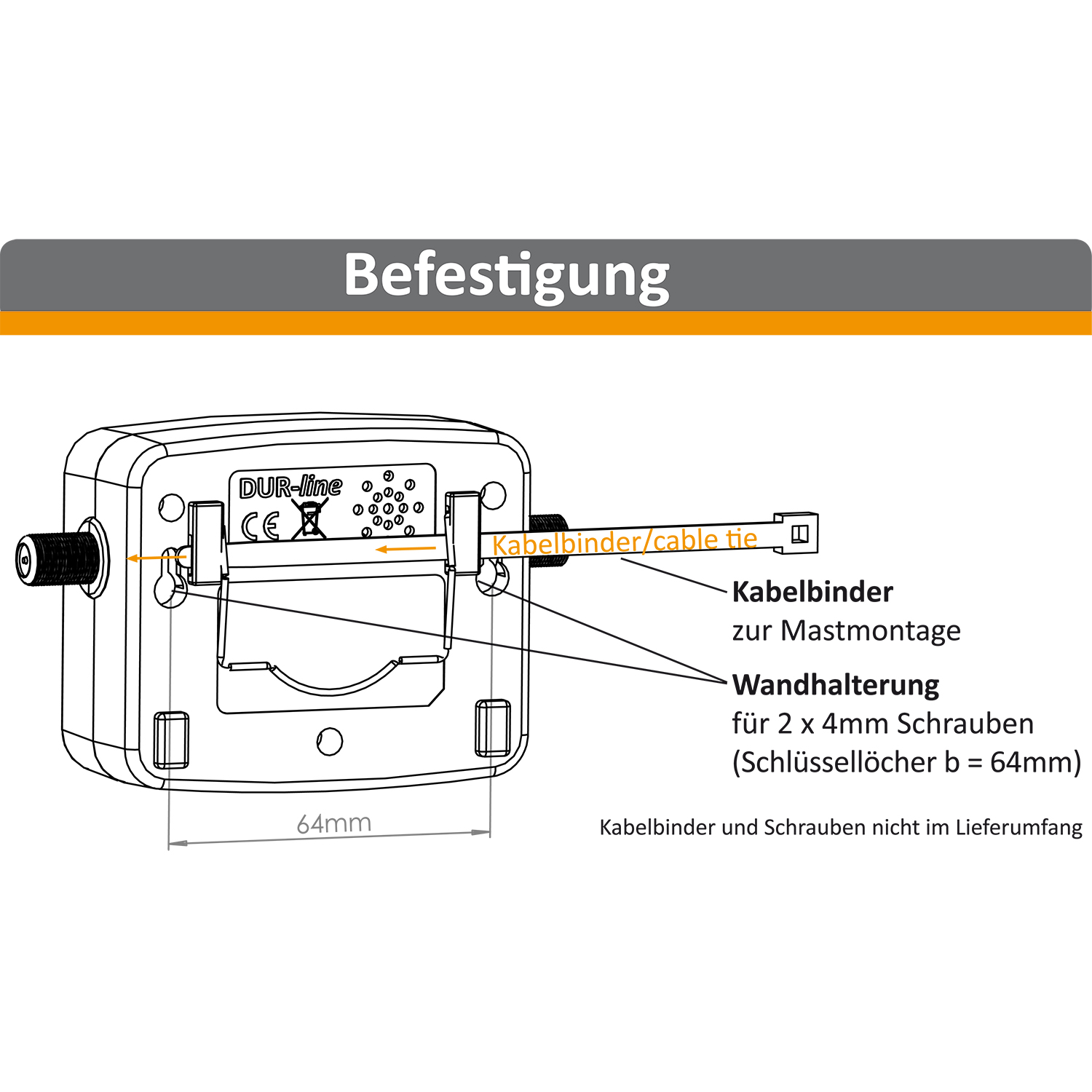 • Batterie nicht erforderlich. Stromversorgung über den Receiver / TV (z.B. über das verlegte Koaxkabel )