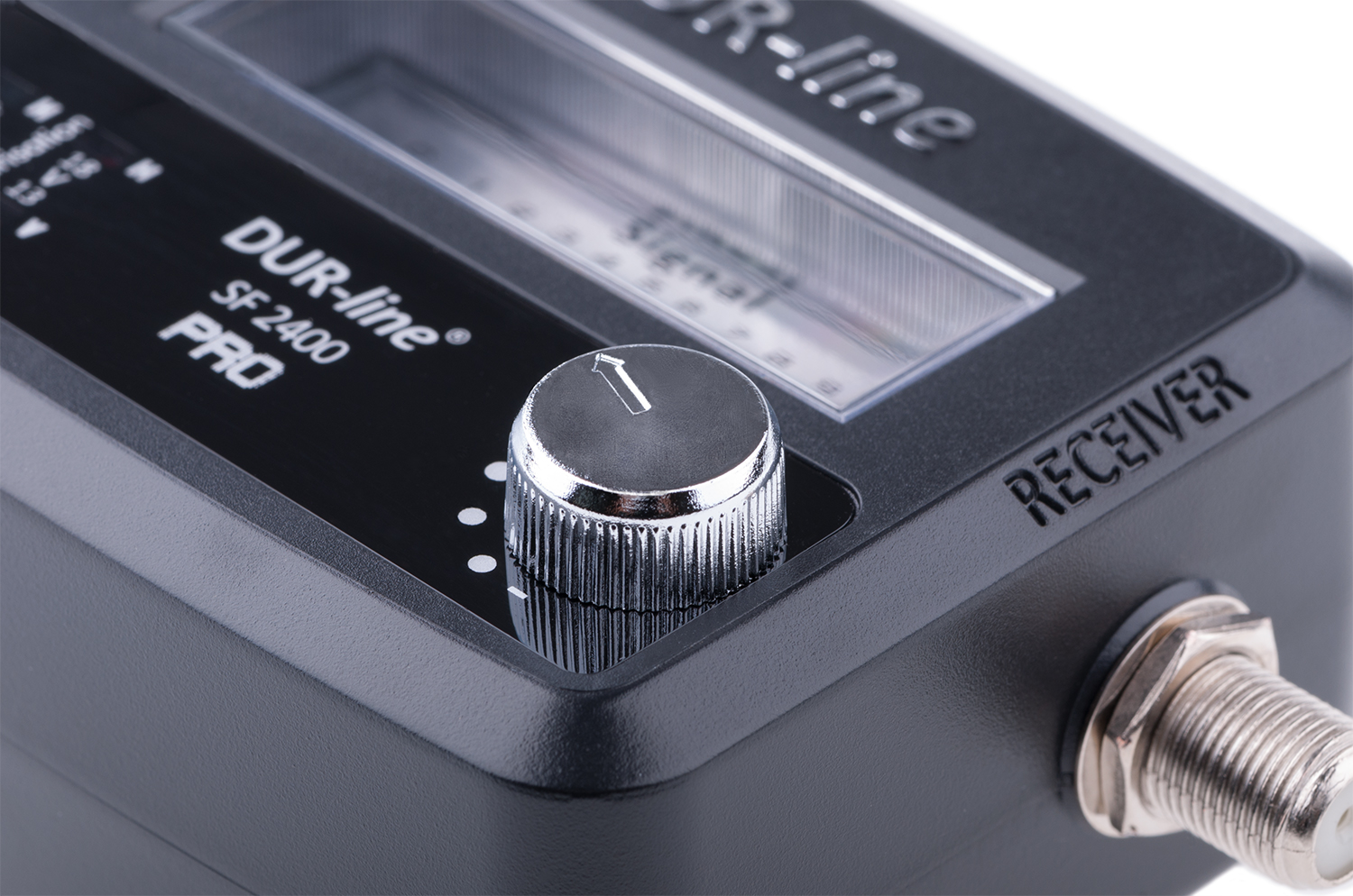 Beim Ausrichten der Antenne wird der Empfang durch eine optische Anzeige mit Hintergrundbeleuchtung und durch einen akustischen Messton angezeigt und ermöglicht so eine schnelle und optimale Ausrichtung der Antenne. Der Empfindlichkeits-Regler ermöglicht die optimale Anpassung der Signalstärke ob von große oder kleine Satellitenschüsseln.