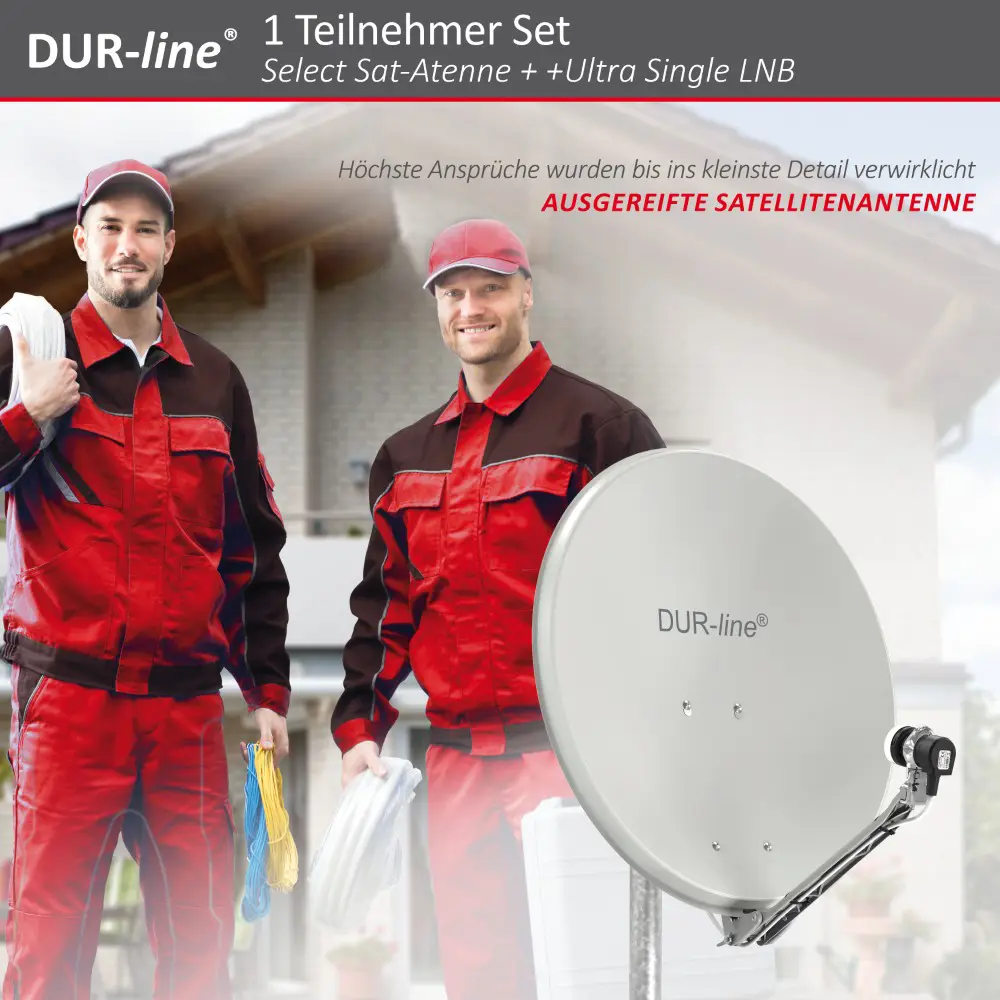 Hier erhalten Sie eine erstklassige Satanlage , bestehend aus der mehrfach ausgezeichneten DUR-line® Select 60/65 Satellitenantenne und einem nagelneuen DUR-line® +Ultra - LNB.