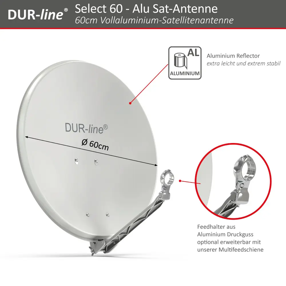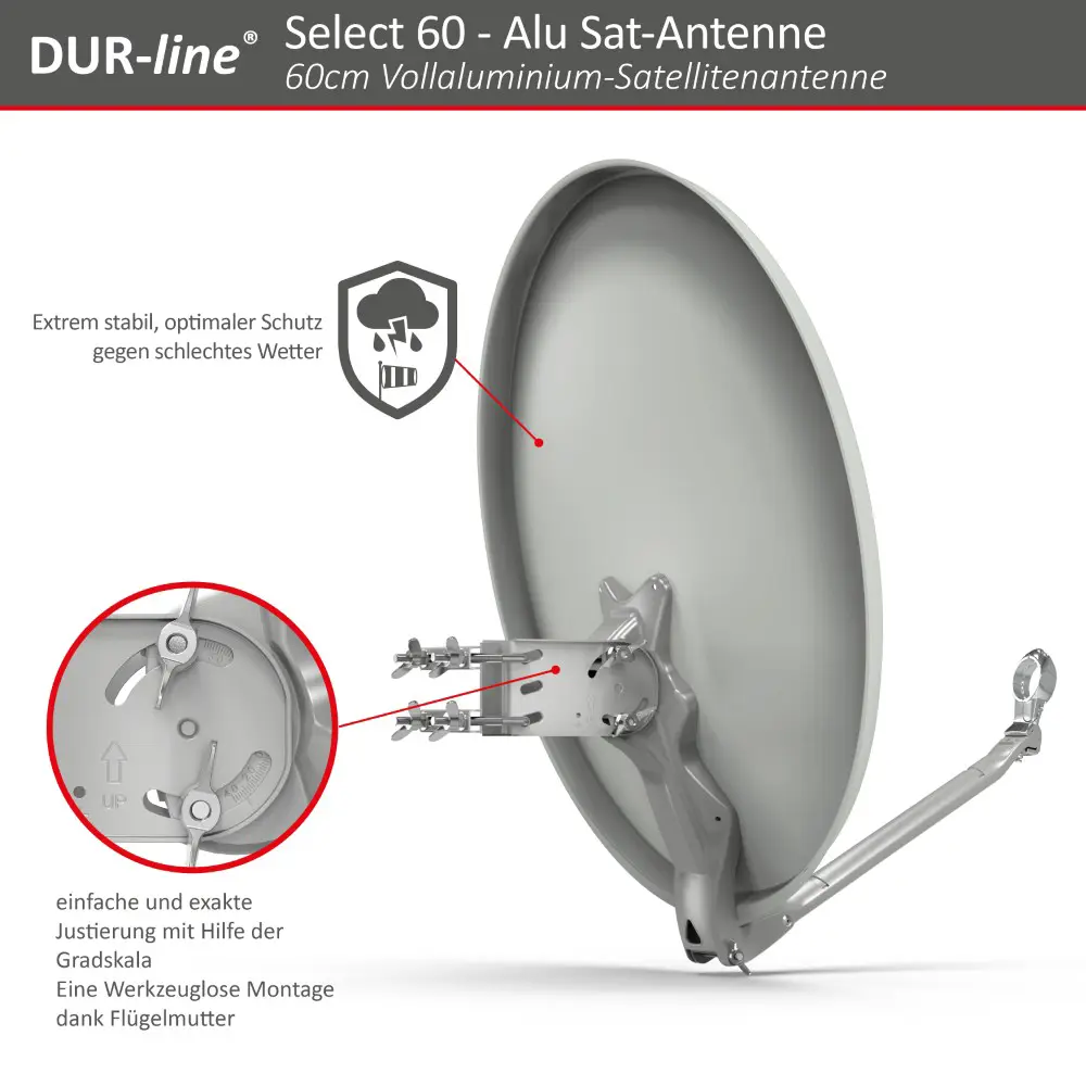 1x DUR-line® Select 60/65 Hellgrau – Satellitenantenne